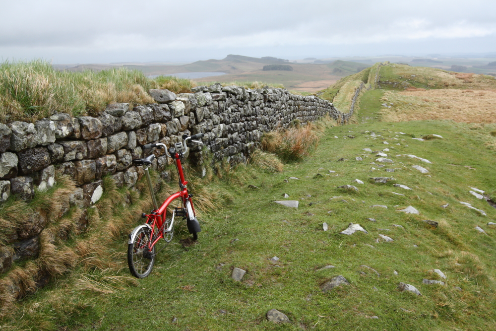 С утра меня раздирало любопытство и желание несмотря ни на что пройти или проехать (это уж как удастся) хотя бы часть Pennine way, который идет непосредственно вдоль стены. Иначе незачем и ехать было сюда. От Twice Brewed оставалась примерно половина крутого пешего маршрута. Я втащила велик прямо по стене и двинулась пешком на запад, ведя Боба рядом. Если бы не большие камни, сильно изразанный холмами пейзаж, то и дело попадающиеся навстречу бэкпэкеры и калитки в заборах с колючей проволокой, через которые приходилось велик перебрасывать, то можно бы было худо-бедно ехать временами. Встречающиеся бэкпэкеры удивлялись, что я еще и велик с собой тащу. Британского северного колорита добавлял косой дождь и свистящий в ушах ветер. Иногда тяжко приходилось.