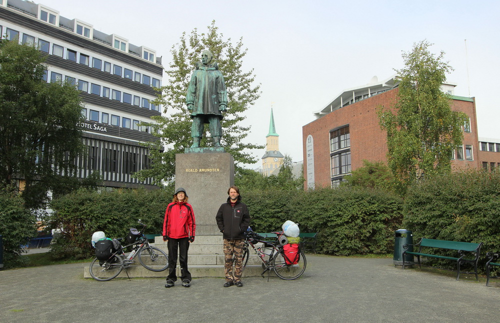 Тромсё встретил утренней прохладой и двумя мужичками, пьющими нечто из засаленных стаканов на скамейке возле памятника Амундсену. Приятный живой дух города сразу проникает в тебя.