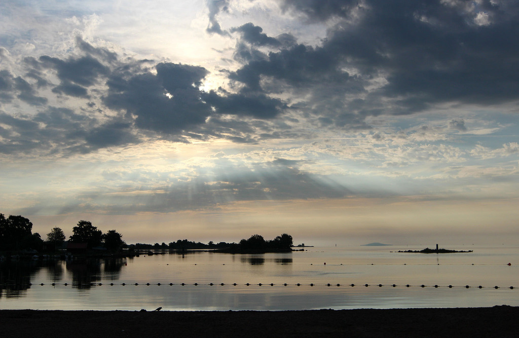 Встать пришлось в 6 утра, вообще не выспалась, но страх опоздать на паром и зависнуть в грустном и обшарпанном Оскарсхамне только и держал на ногах. Позавтракать не успела, даже кофе не успела сварить, запаковала все сумки еще с вечера, чтобы утром осталось сложить минимум, погрузить и уехать в порт. Рассвет на пляже очень красивый, от такой красоты сонливость как рукой сняло.
