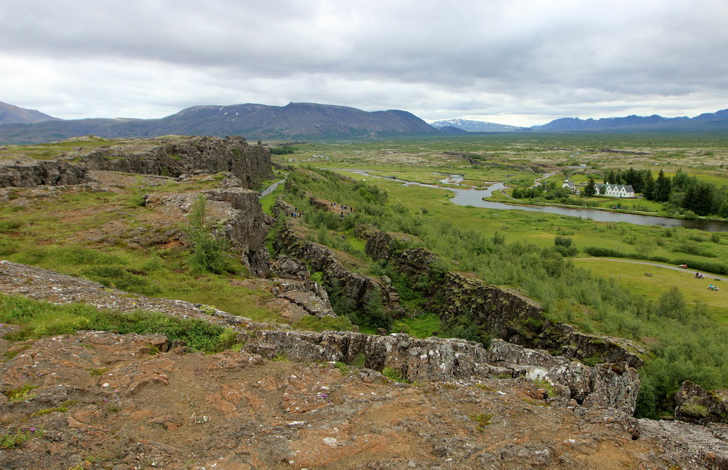 Тингвеллир оказался первым местом за все наше путешествие, отдаленно связанным с викингами. Здесь на месте большого разлома между двумя тектоническими плитами (североамериканской и евразийской) викинги организовали себе место для собраний народного вече – альтинга. В те времена древнейший парламент в Западной Европе выполнял законодательные и судебные функции. Здесь же в 1944 году была провозглашена независимость Исландии от датчан. Соответственно место это для Исландцев священно.