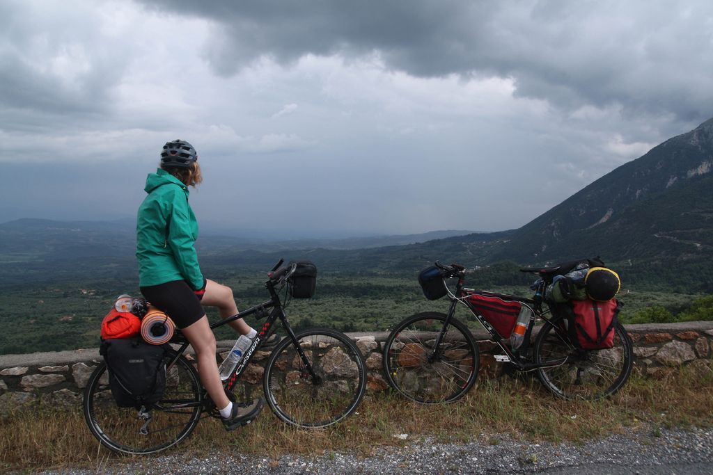 Вещи наши сегодня то мокнут, то сохнут. Еще раз мы нагнали голландца на высоте 860 метров в деревне Георгитси – самой высоко расположенной деревушке. Видели мы Хенка на серпантине, но в деревне он не задержался и укатил вниз. А у меня сломалась спица на переднем колесе и образовалась небольшая восьмерка. Прелестью 36-ти спиц является то, что даже если одна сломается, то у тебя их остается еще 35. И ехать можно спокойно даже при достаточной нагрузке на колесо. Но я все равно спускалась поначалу осторожно. После таких горных дорог уже и тормоза ни черта не держат, надо снова их подкручивать, а то и заново менять колодки.