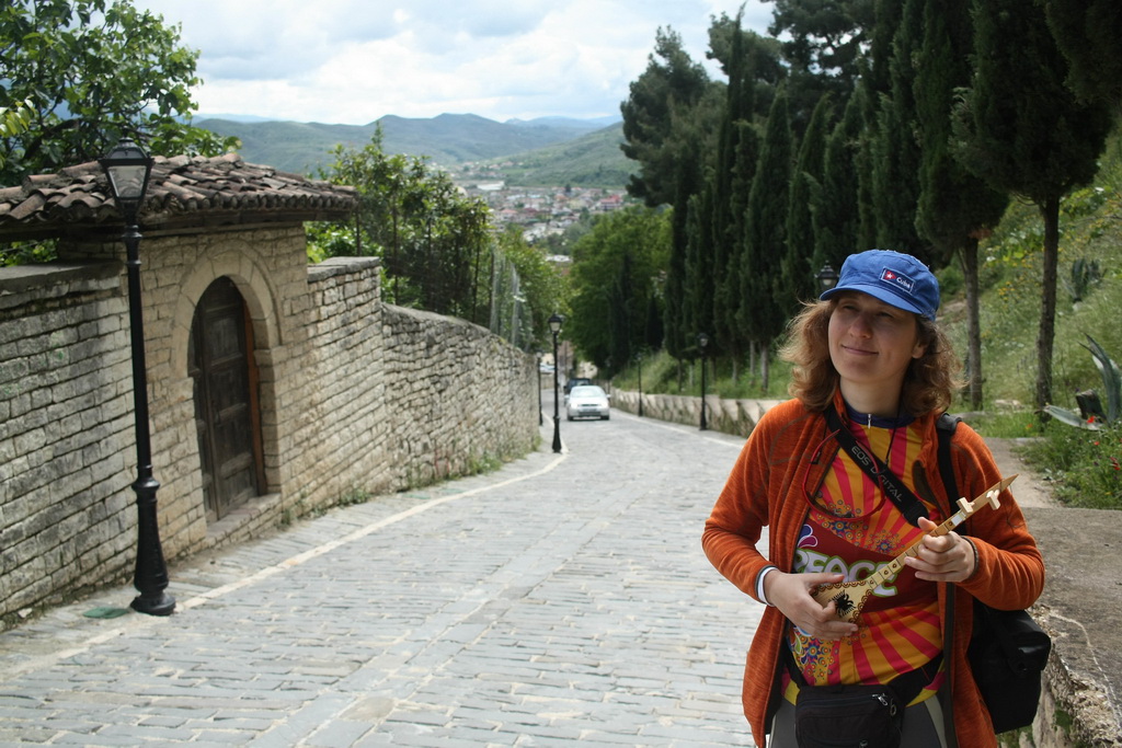 Мы решили потроллить ленивых музыкантов: Витя проходил мимо нелепо пританцовывая, а я шла за ним с камерой. Атмосфера тотального стеба как ответная реакция на отношение к нам как к назойливым понаехавшим туристам пронизала все наше присутствие в Берате. В сувенирной лавке в крепости я купила национальный инструмент чифтели – щипковый инструмент грушевидной формы с двумя струнами.