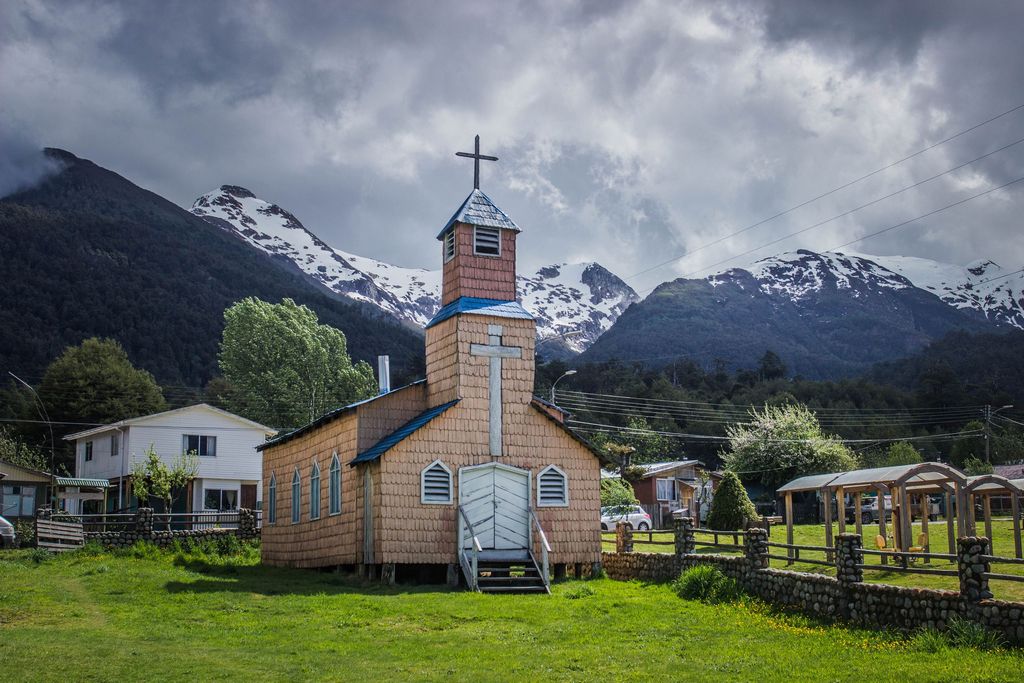 Деревянная церковь в Вилья Аменгуаль в патагонском архитектурном стиле. Была закрыта на замок и похоже не сильно используется.
