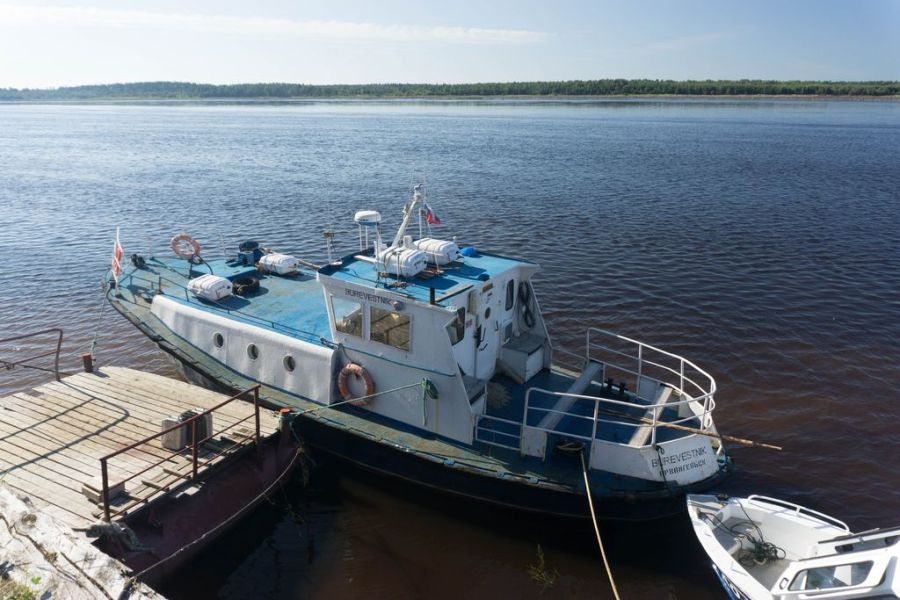 От станции я еду в гостиницу «Онега в порту». По дороге заезжаю в «Пятерочку» и закупаю продуктов сразу на две недели, на весь маршрут. На полуострове есть деревенские магазины, но что там с продуктами — одному богу известно. Да и кто знает, успею ли справиться за две недели? Рисковать не хочется. В гостинице меня поджидает администратор Дима. Мы уже знакомы, ведь в прошлом году я проезжала через Онегу, ездила на остров Кий на теплоходе «Буревестник». Дима помнит меня хорошо. Спросила про капитана «Буревестника» Алексея Саныча — потомственного помора, который устроил мне тогда внезапный мастер-класс по судовождению на обратном пути с Кия. В этом году он снова работает и привез еще больше самогона. Живет все в той же комнате в гостинице. Не напороться бы мне на него, а то вообще из Онеги не уеду без задушевной беседы. Бард Володя Петров уехал вчера в Архангельск. Разминулись всего на день, не успели пересечься. Вроде бы и погода еще позволяет делать рейсы на Кий, но сезон заканчивается. На этой неделе будут последние рейсы теплохода с туристами, санаторий готовится к закрытию. Да и в порту уже стоит запах наступающей осени, несмотря на жару. В гостинице есть важные дела в интернете – закачиваю графики приливов и отливов на две недели вперед и прогнозы погоды на ближайшие дни.