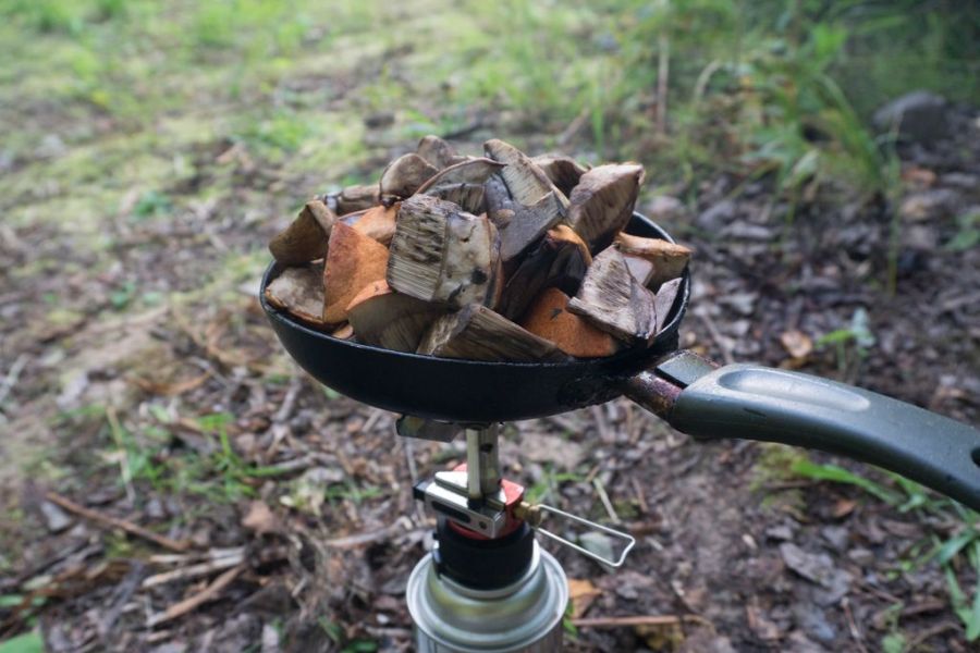 Сегодня хотела было доехать до Вейги и заночевать на берегу. Вокруг одни «заломные леса да лешие болота», палатку поставить можно либо на Вейге, либо на Ухте. Озера от дороги далеко, а больше воду взять и негде. Но на Ухте увидела стоянку и решила остаться. Тем более был уже седьмой час вечера, а у меня грибы – их надо чистить и резать, мороки с ними много. Газа на грибы много тратится. Либо на костре надо готовить, либо вообще не возиться с ними больше. Решила, что грибы и рыбу готовить буду только на костре, а то газа не хватит до Пертоминска.