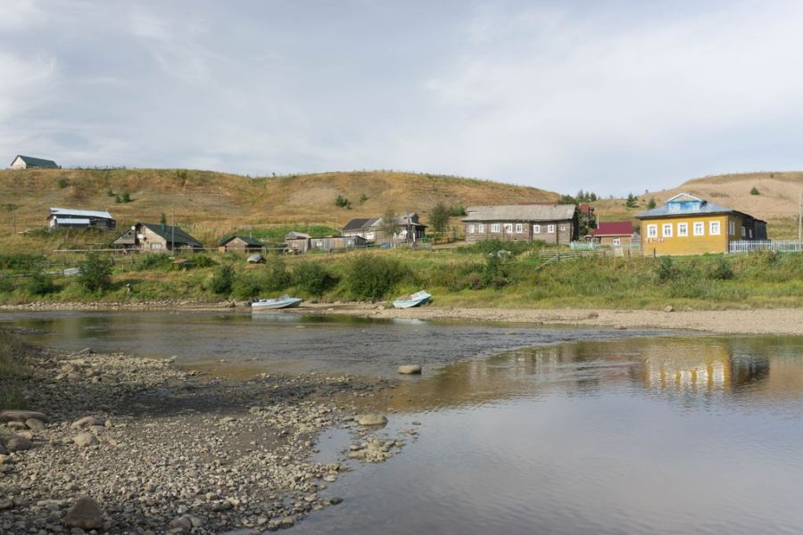 Я боялась, что на приливе Лямцу будет не перейти. В устье это довольно глубокая река. Но переживала я зря, потому что брод находится не в устье, а выше по течению метров на пятьсот в самой деревне. На перекате совсем мелко, и по колено воды нет. Люди в тапочках ходят все время с одного берега на другой.