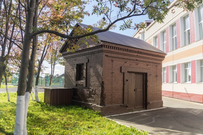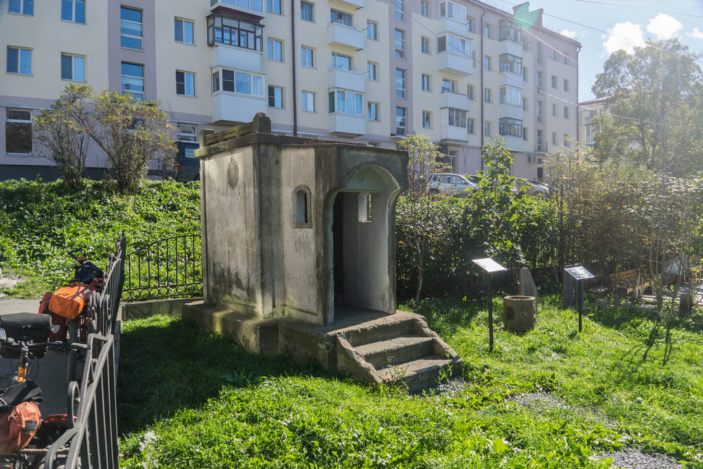 Первым делом мы отыскали чашу для омовений из синтоистского храма возле гостиницы Альфа. Шаверма тоже вскоре нашлась. А вот с краеведческим музеем опять не повезло: в Южно-Сахалинске мы были в понедельник и в музей не попали, и сегодня опять понедельник. И если в Южный мы еще вернемся, то в Корсаков уже нет. Жаль. Но хотя бы увидели еще один хоэнден на территории музея, который отличался по архитектуре от двух других, которые мы видели ранее.