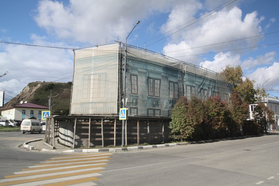 Из японских зданий сохранился также банк Хоккайдо Токусёку Гинкоу со скругленным угловым фасадом. К сожалению, этот необычный памятник архитектуры в плачевном состоянии и затянут баннером, намекающим на аварийность и необходимость реставрации. А из интересных русских памятников запомнилась пушка с крейсера «Новик», который отличился в Русско-японской войне. В 1904 году «Новик» зашел в Корсаков для пополнения запасов угля, но так и не успев загрузиться, принял бой с японским крейсером «Цусима». «Новик» получил сильные повреждения и был затоплен. Тем не менее после своей победы японцы отремонтировали судно, и еще десяток лет оно ходило под японским флагом, пока не устарело. Орудия были сняты, а крейсер распилили на металлолом. После возвращения Сахалина пушка долгое время стояла на русско-японском кладбище, а затем ее перенесли в порт. Орудие стало частью монумента в память о военных сражениях у Корсакова.